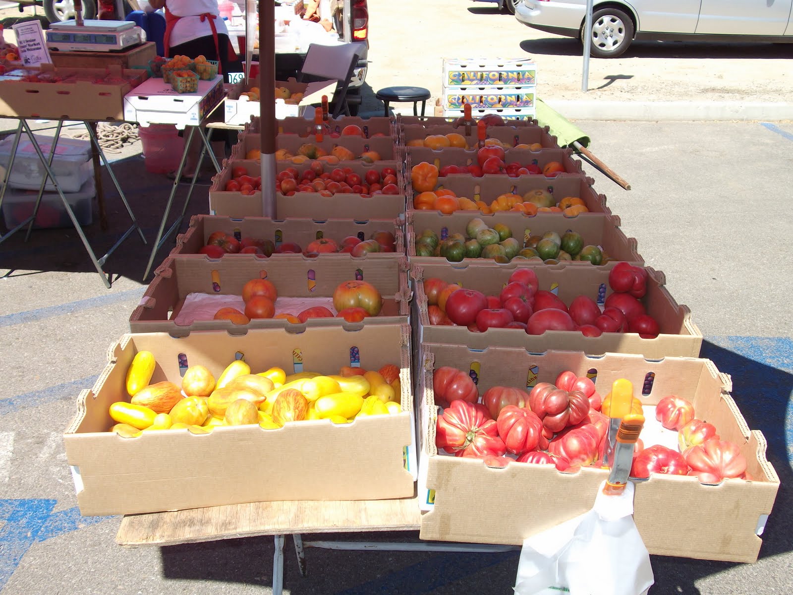 There is no reason to post these pictures other than to celebrate fresh fruit and vegetables, much of it organic, available at Bakersfield farmer's markets. This is the Saturday market that runs from morning to noon at the corner of Brimall and Calloway Drive.