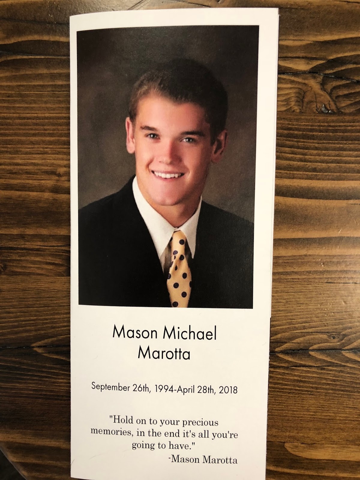 * ... MASON MAROTTA: It was standing room only for the funeral and mass for Mason Marotta, the 23-year-old Garces High graduate who died suddenly recently. Mason was the son of Lynda and Mike Marotta and like his father, was a gifted athlete with a wide range of interest and friends. The mass at St. Francis Parish was presided over by Monsignor Craig Harrison who used Mason's love of his own family and nieces to remind us all to tell our loved ones how much we love them.